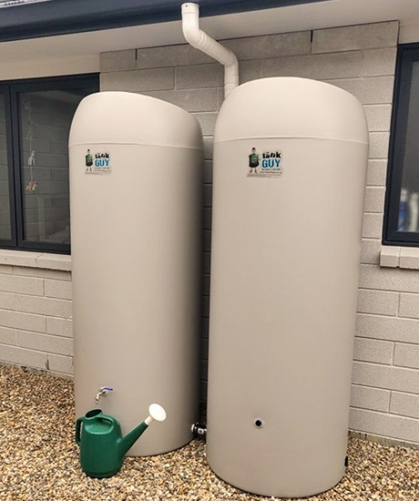A simple stand-alone water tank such as The Tank Guy is an economical option with sizes ranging from 600L to 4000L. The most common size we install is the 800L Slimline tank as pictured, with prices starting from around $700 plus delivery and installation.